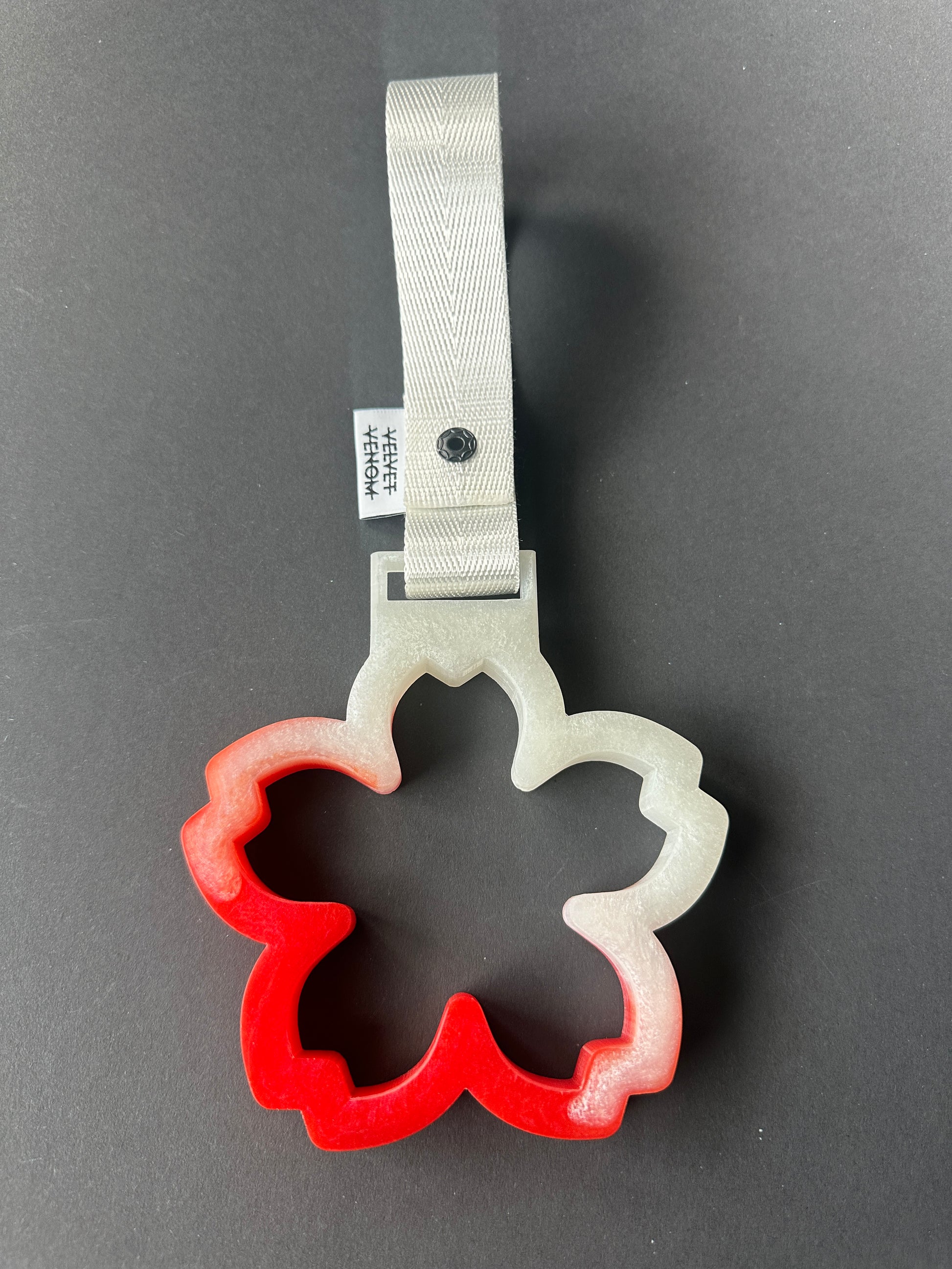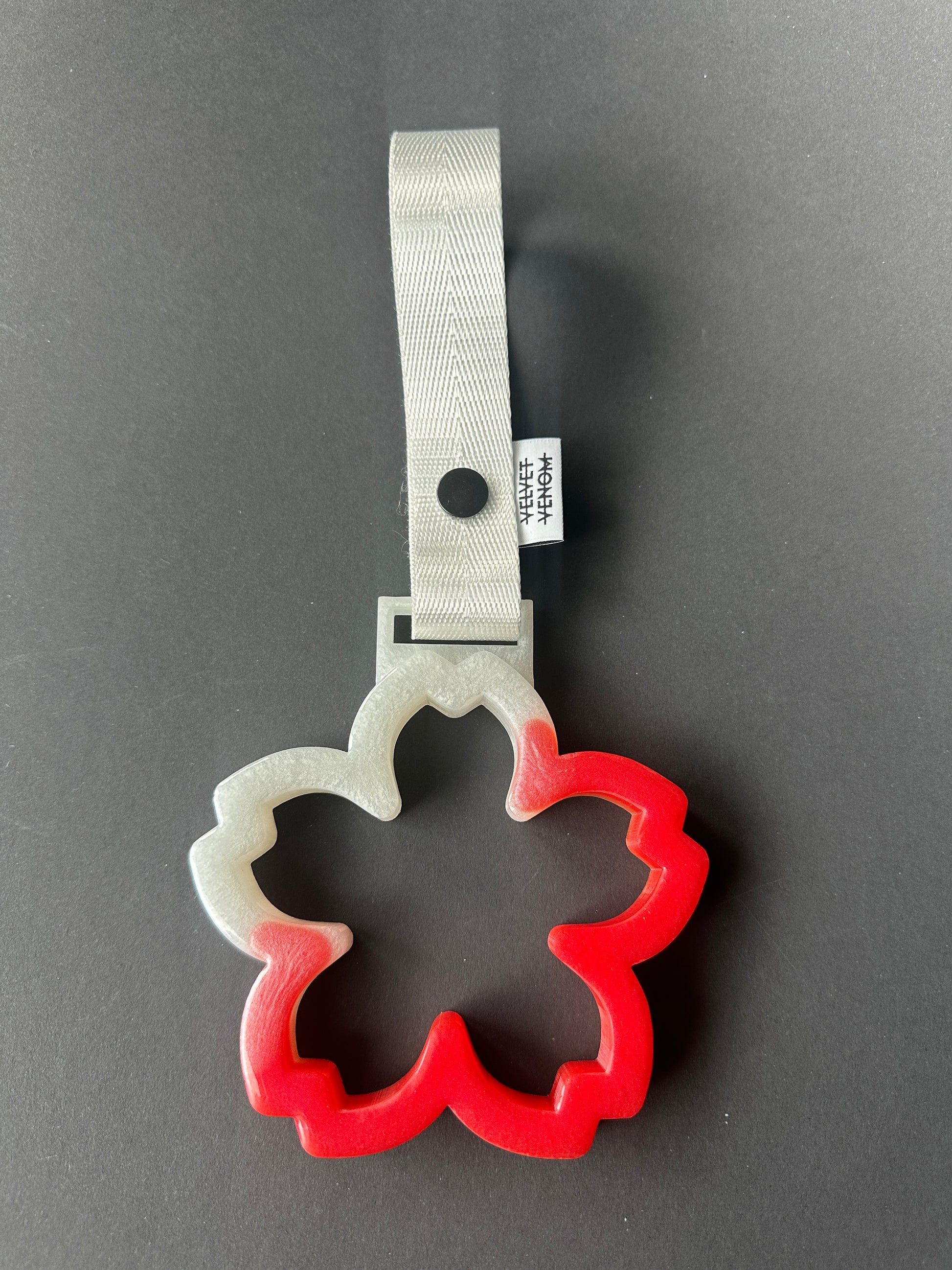 Sakura Tsurikawa in white and watermelon red. Comes with white strap and black button.
