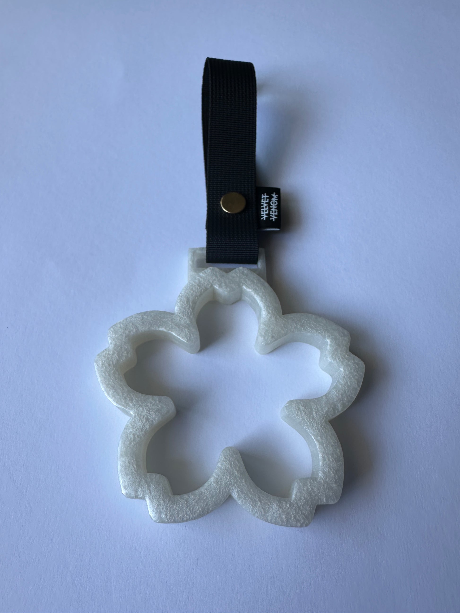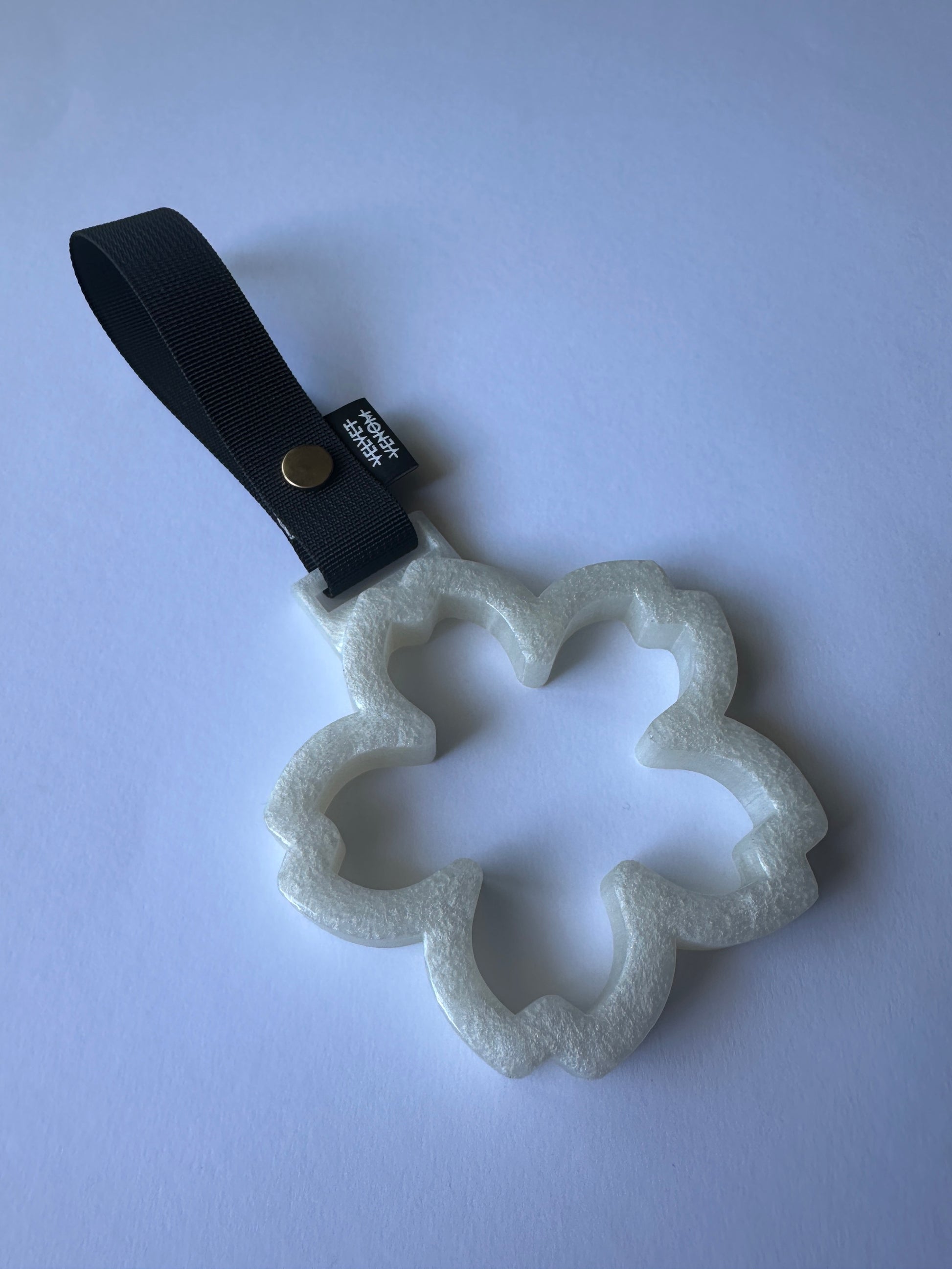 Sakura Tsurikawa in white. Comes with black strap and gold button.