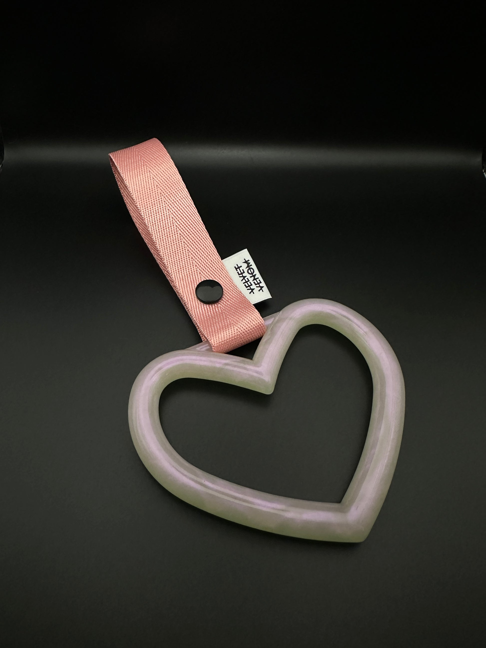 Heart Tsurikawa in galaxy white. Comes with rose strap and black button.